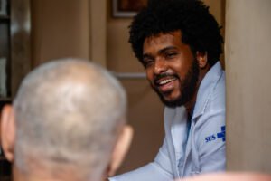 Comecei a entender o verdadeiro sentido de estar do outro lado da mesa. Percebia o sorriso das pessoas que me viram crescer ao me encontrar como médico. E também o olhar dos jovens da minha rua, que me viam ali e, mesmo sem dizer uma palavra, entendiam que o futuro deles também podia ser naquele lugar, ou onde quisessem”, conta ele. “Desde então, levo esse propósito comigo: mostrar para os nossos que também podemos ocupar esses espaços. A gente pode chegar lá”.