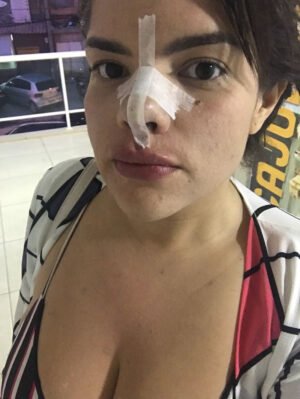A jornalista teve o nariz necrosado após uma rinomodelação com profissional não médico e hoje, por meio página esteticaderisco no instagram, acolhe pessoas que passaram pelo mesmo problema e alerta a população. “Há mais de 5 anos busco justiça e quero dar voz a outras vítimas que fizeram procedimentos com profissionais não habilitados”, disse ela.